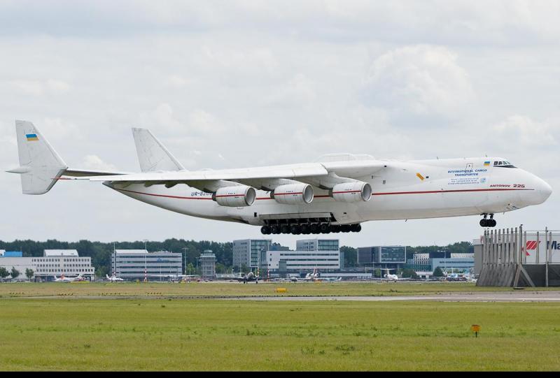 An 225 which is also called "Mriya" which means dream is the biggest airplane ever made. It has 32 wheels and six engines.